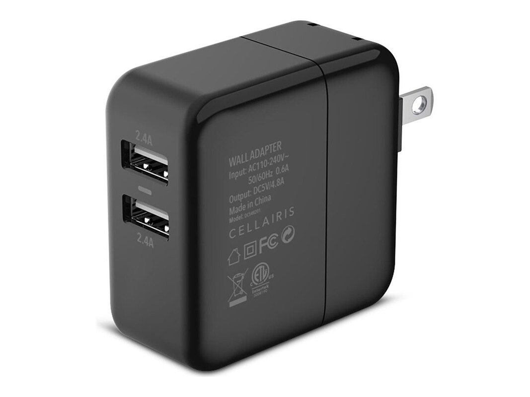 The Cellairis Dual USB-A Wall Adapter offers fast, efficient charging at home, in the office, or on the go. Charge two devices at once with up to 2.4A of power in each USB-A port (4.8A total). It works with any device that has USB charge compatibility.