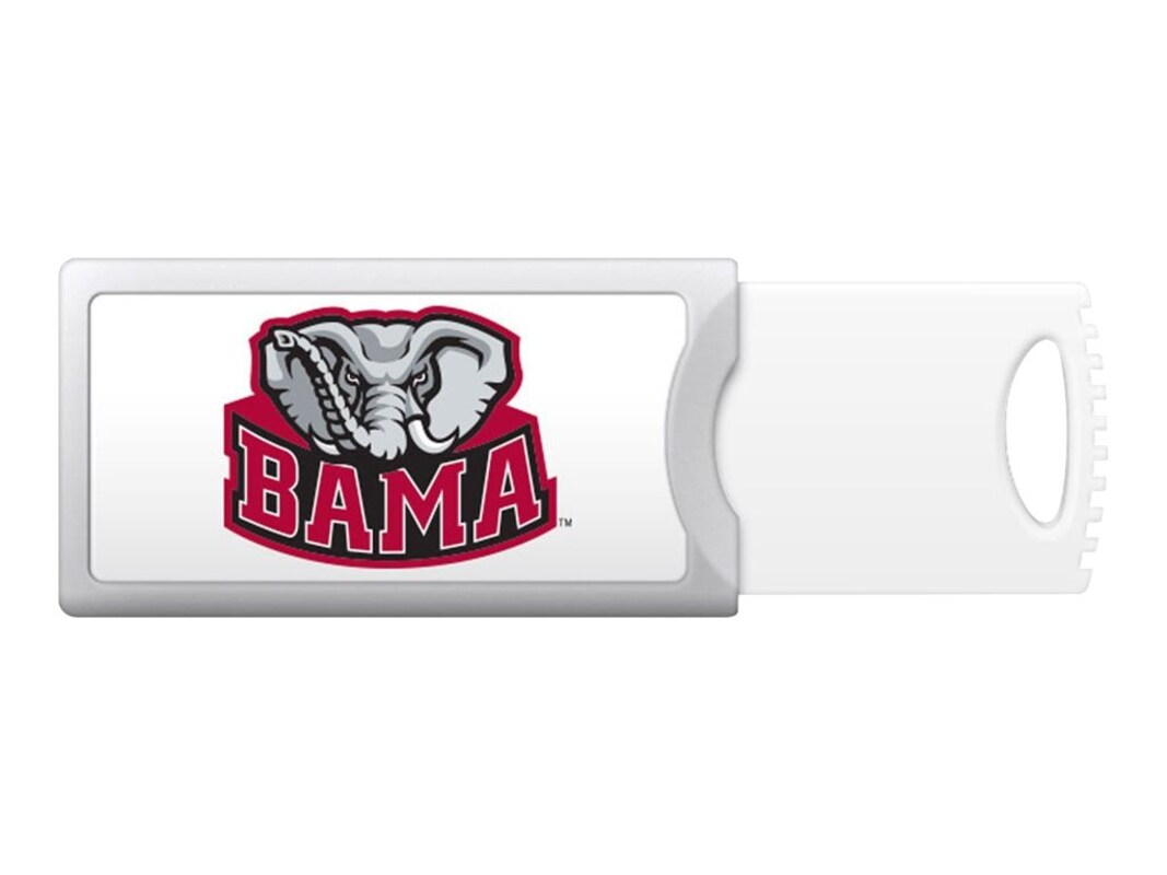 The University of Alabama Classic V1 Push USB flash drive offers a practical solution for storing and transferring data with its 16 GB storage capacity. Its retractable connector design ensures ease of use while protecting the connector from damage when not in use. Compatible with various devices, this flash drive keeps essential files handy while showcasing support for the University of Alabama.