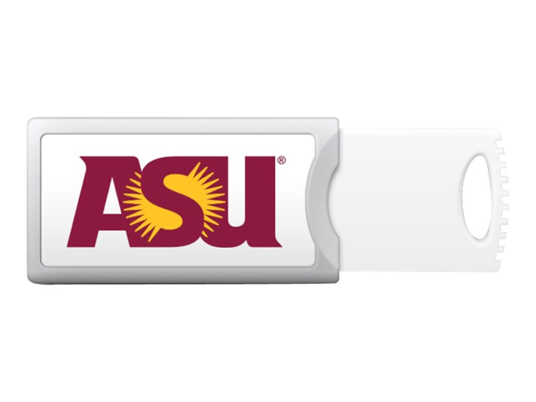 The Centon Collegiate Arizona State University USB flash drive combines functionality with school spirit. With a storage capacity of 32 GB, this flash drive is ideal for students and faculty needing to store and transfer essential files and documents. The retractable connector design provides protection for the plug port, making it convenient for everyday use. Show your Arizona State University pride while having a reliable storage solution at your fingertips.
