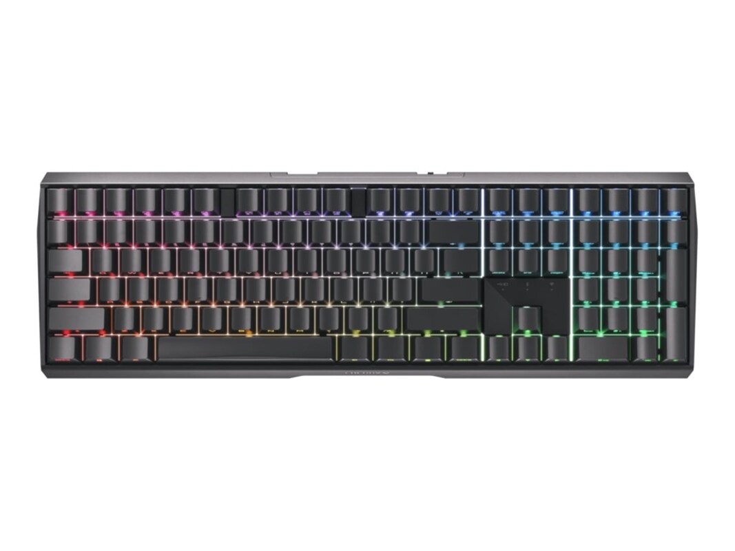 CHERRY MX 3.0S wireless - the wireless, high-performance gaming keyboard in a classy aluminum design with RGB lighting. With CHERRY advanced wireless technology, you can choose from different connection modes. When you are in the incredibly fast gaming mode, there is no limit to your speed with a latency of less than 1 ms. The tried-and-tested mechanical CHERRY MX switches, classic CHERRY gaming functions and intelligent charging technology give you the freedom to win. Performance and style!
