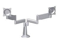 Chief's KCY Dual Monitor Height Adjustable Desk Mount for small flat panel monitors provides maximum ergonomic flexibility. Monitors can be independently positioned for users' optimal viewing comfort (sitting and/or standing), for privacy, or for information sharing. Centris Technology uses the center of gravity to balance the screen, providing easy finger adjustments.