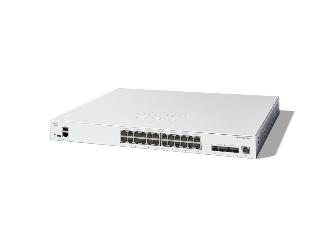 The Cisco Catalyst 1300-24XT switch is part of the fully managed switch line that delivers reliable and secure connectivity for small business networks. These switches accelerate your digital transformation by delivering full Layer 2/3 capabilities, an intuitive web dashboard, advanced networking features, and PoE+ support.