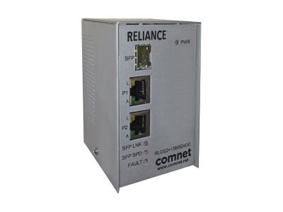 The ComNet RLGE2+1SMSPOEHO is a substation-rated and industrially hardened 3-port self-managed Ethernet switch with uplink management capability, that supports Universal PoE (Power over Ethernet) powered devices requiring up to 60 watts of operating power. Designed to the requirements of IEC 61850-3, IEEE 1613 Class 2, EN50155, and NEMA TS-1/TS-2, it is intended for deployment in environments where high levels of electromagnetic noise and interference (EMI) and severe voltage transients and surges are routinely encountered, such as electrical utility substations and switchyards, heavy manufacturing facilities, trackside and roadside electronic equipment, and other difficult out-of-plant applications. User-selectable link fault pass-through provides remote indication of a network fault, and two summary fault alarms provide a local or remote indication via dry contact closures in the event of loss of optical link or operating power. The 10/100/1000BASE-TX ports support both auto-negotiation and automatic MDI/MDI-X crossover for full and half-duplex operation; manual MDI/MDI-X switching is not required. The RLGE2+1SMSPOEHO comes pre-programmed, preventing network video flooding with DIP-switch selection of the SFP port as uplink or as an unmanaged switch. The internal/self-contained power supply features redundant 48 VDC inputs, for the highest possible reliability. The simple to install, plug-and-play RLGE2+1SMSPOEHO is DIN-rail or panel-mountable, and is ideal for mission-critical applications where very high levels of reliability and network availability are of the utmost importance.