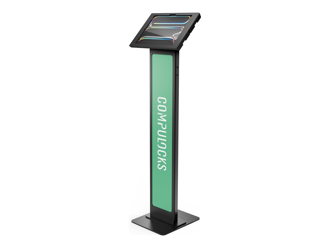 Discover the blend of security, functionality, and aesthetics with the Compulocks mounting kit. Designed specifically for 13" tablets, this floor-standing solution is suitable for any setting requiring a secure, flexible display option. From retail to educational environments, the kit's flip and tilt adjustments ensure your content is always presented well, whether in portrait or landscape orientation. The robust metal and polypropylene construction, coupled with a reliable key-lock system, protects your device against theft or tampering. Moreover, the concealed cable management feature not only enhances security but also maintains a clean, professional look. With the inclusion of both enclosure and stand components, setting up your display is straightforward, making it an excellent choice for businesses and institutions looking for a reliable tablet display solution.