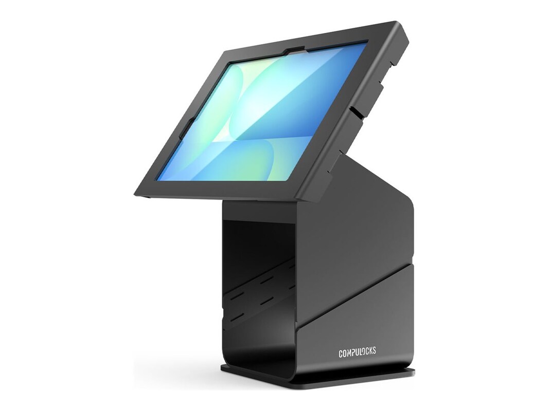 The Compulocks Apex is a versatile stand designed for secure and efficient use in various environments. Its kiosk style and lockable enclosure provide a safe space for tablets or printers, ensuring both accessibility and protection. Built with a metal frame and high-grade aluminum, this AV furniture is perfect for counter placement, fitting seamlessly into different settings while accommodating displays up to 13.1 inches. The choice of materials ensures durability and a professional appearance, making it ideal for retail or business applications.