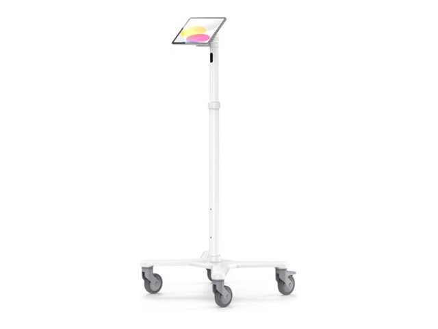 The Compulocks Magnetix cart is designed to provide a versatile solution for displaying tablets with a maximum size of 13 inches, or 33 cm. This cart features an integrated cable management system, keeping workspace organized and tidy while ensuring that the setup remains visually appealing with minimal clutter. With adjustable height and depth, this cart can be customized to meet various user preferences and environments, suitable for personal and professional use. Constructed with mobility in mind, the Magnetix cart includes four wheels, all equipped with brakes for added stability when stationary. The sturdy design allows for a maximum load weight of 2.27 kg, making it ideal for tablets while ensuring safety and reliability in different settings, including medical facilities. The magnetic feature enhances the convenience of mounting and removing displays with ease.