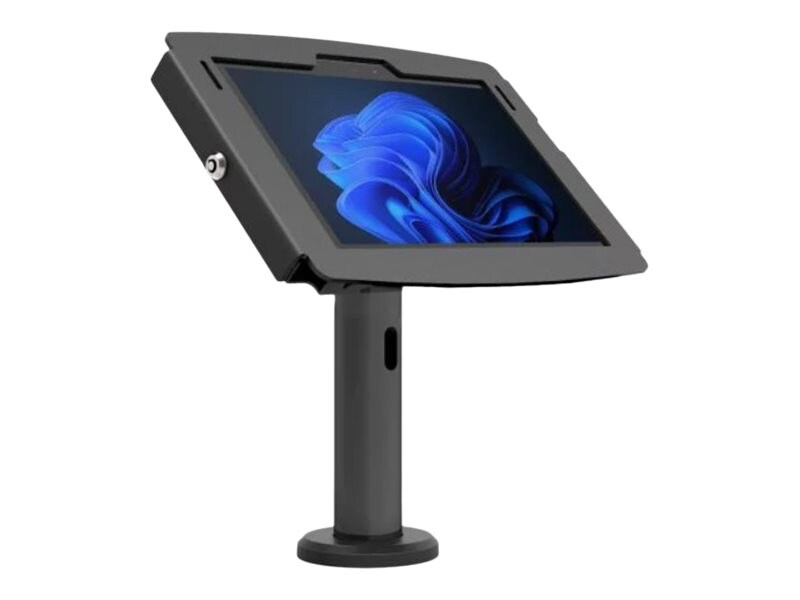 Discover the perfect blend of security, functionality, and style with the Compulocks Surface Go (1-4 Gen) Space Enclosure Tilting Stand 8". Designed specifically for tablets, this mounting kit is an ideal solution for any setting requiring a secure and interactive display. The aluminum construction not only adds a layer of durability but also presents a sleek, professional look. With the ability to adjust the display with flip, rotation, and tilt options, it ensures that your content is always presented in a good way. The key lock feature provides peace of mind, securing your device against unauthorized access. Additionally, the internal cable management system offers a clean, organized setup by neatly concealing cables. Whether it's for a desk-mountable or freestanding setup, this tilting kiosk design is versatile enough to meet your needs. Elevate your tablet display setup with this comprehensive mounting kit.