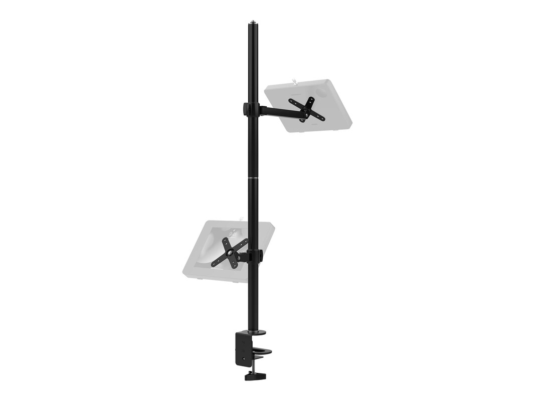 This attachable dual-VESA-plate arm clamps to tables or countertops, making it the perfect multi-screen holder for offices, warehouses, schools, construction sites, and in the restaurant industry for those who use 3rd party delivery services. Mount the rubber-grip base clamp onto a table or planar surface securely by tightening the clamp knob. Then, add the two sturdy 75 x 75 and 100 x 100-milimeter VESA Plates from the top, positioning at any location with 360-degree swivel points along the center pole. One VESA plate offers a 3-3/8" extension while the other offers a longer 10-3/8" extension. Plates are compatible with any VESA enclosures or devices (cases and enclosures not included), and allow plenty of tilt angles and rotation for use in either portrait or landscape orientation. This versatility boasts a superior ability to create a well catered kiosk that supports all the needs of your company or business.