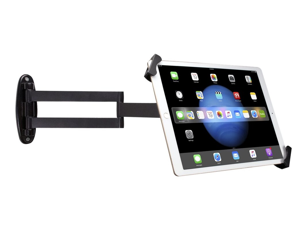 Security meets functionality with the Articulating Security Wall Mount for 7-13 Inch Tablets from CTA Digital. Perfect for classrooms, conference rooms, or doctors' offices, this powerful holder makes your tablet the protected centerpiece of your workspace. 4 pliable joints allow for vast positioning options, while a 360-degree rotating holder enables quick shifts between portrait and landscape orientations. This arm mount combines its full range of maneuverability with space-saving ingenuity, from its maximum extension of 16.5 inches to folding nearly flush against the wall, while a lock and key security system keeps your tablet protected against theft. The arm mounts easily to any wall with a set of included hardware, and the adjustable holder accommodates any 7-13 inch tablets, including the iPad mini 4, iPad Pro, iPad Air, Surface Pro, or Galaxy Tab S2.