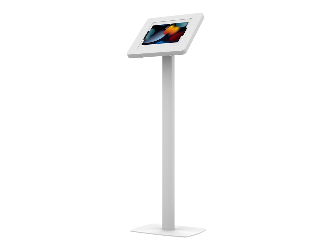 This sturdy and elegant Premium Thin Profile Floor Stand with CTA Digital's popular Large Paragon Security Enclosure is the perfect addition to any retail store, restaurant or office space. The padded enclosure protects your tablet from theft with a lock and key, cushioning your tablet with included model-specific foam adapters. The enclosure is designed to allow full access to your tablet's charge ports and front camera and provides a tilt adjustable flexibility to adjust the angle to the desired preference. The enclosure also rotates a full 360 degrees for portrait and landscape displays. Standing 45 inches tall, this heavy-duty floor stand features plenty of room in the hollow interior for clean charge cable routing. The weighted, padded base keeps kiosks in place while protecting floor surfaces. Compatible with Apple iPad Pro 12.9? (2015, 2017, 2018, 2020) and Surface Pro 3, 4, 5, 6, and 7.