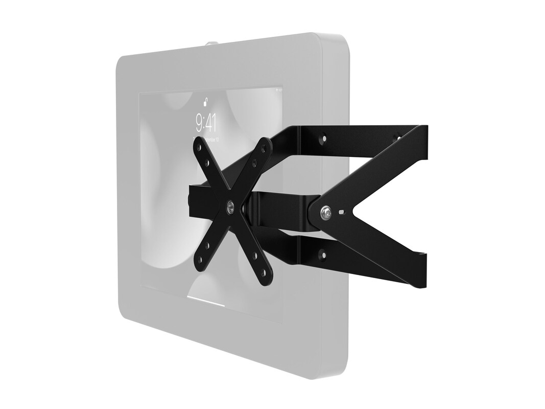 This versatile desk mount is the perfect tablet stand for retail transactions, use at home, the office, hospitality counters, or any place you need the ability to fully tilt your tablet to face the opposite direction. The sturdy metal base can be permanently mounted to any horizontal surface via pre-drilled holes, but is also heavy enough for use even without screwing it down. The VESA plate rotates along the center cross-bar, allowing for use in either portrait or landscape orientation. The 75 x 75-millimeter and 100 x 100-millimeter VESA mount can be used in one of two ways. As a desk mount, it's simple to add a compatible enclosure, like CTA's popular PAD-PARAW Paragon Enclosures (not included), monitors, or other compatible device cases. The VESA mount can also be screwed into a wall, creating a versatile mount with plenty of angle adjustments. A pre-drilled hole through the center of the mount allows the added protection of a Kensington Cable, to loop and lock to a table leg, wall pipe or other permanent fixture (not included).