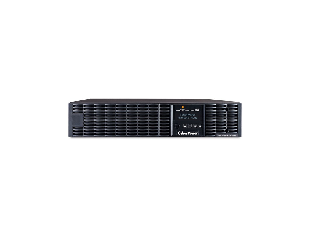 The CyberPower OL1000RTXL2UN is a rack/tower UPS with double conversion topology. It provides sine wave output to critical applications and equipment that require seamless power correction. The Extended Battery Module (EBM) expands runtime, and Fast Charge Technology restores full backup power faster. This model comes with an extendable LCD control panel, Smart Battery Management charging technology, and energy-saving GreenPower UPS ECO Mode.