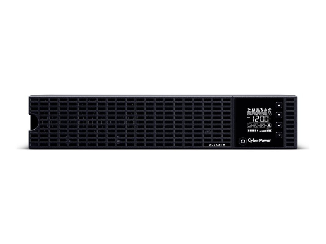 The CyberPower Essential Online OL2K2RM is a rack mounted UPS with double conversion topology. It provides sine wave output to critical applications and equipment that require seamless power correction. The Extended Battery Module (EBM) expands runtime, and Fast Charge Technology restores full backup power faster. This model comes with Smart Battery Management charging technology, and energy-saving GreenPower UPS ECO Mode.