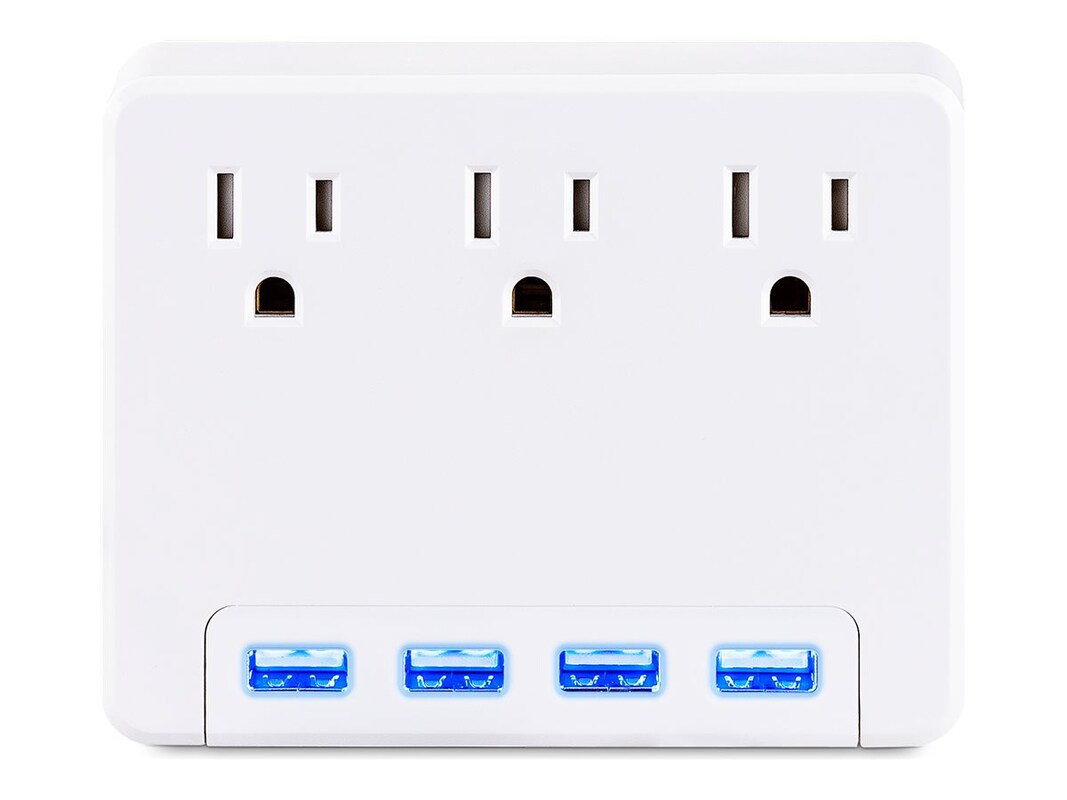 The CyberPower P3WU Wall Tap features 3 power-expanding outlets and backlit USB port lighting so it's easy to find even in low lighting. The glow of the LED takes the frustration out of locating and plugging in personal electronics. The 4 USB charging ports will keep your tablets, smart phones, gaming gear, fitness trackers, and other electronics up and running. Plus, it's backed by our One-Year Limited Warranty.