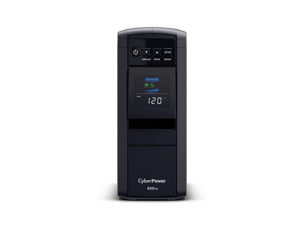 The CyberPower CP850PFCLCD Adaptive Sinewave uninterruptible power supply (UPS) with pure sine wave safeguards computer systems that use conventional and Active Power Factor Correction (PFC) power supplies. Its automatic voltage regulation (AVR) topology delivers clean and consistent AC power. The patented GreenPower UPS advanced circuitry reduces UPS energy costs by up to 75% compared to competitive models.