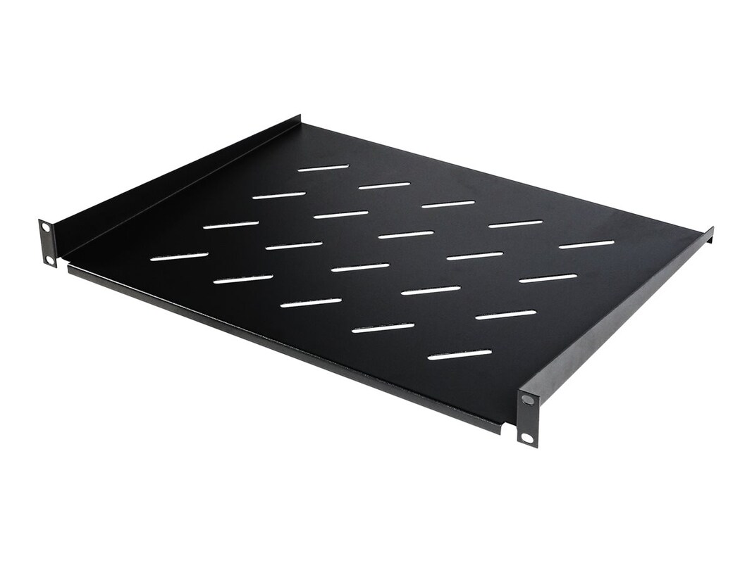 The CyberPower CRA50002 is a 1U 13" deep cantilever fixed shelf designed to support up to 40 lbs of monitors and other IT equipment without rack mounts. Two shelves can be used back-to-back to create a deep shelf in a 2-post open frame rack. Required mounting hardware is included.