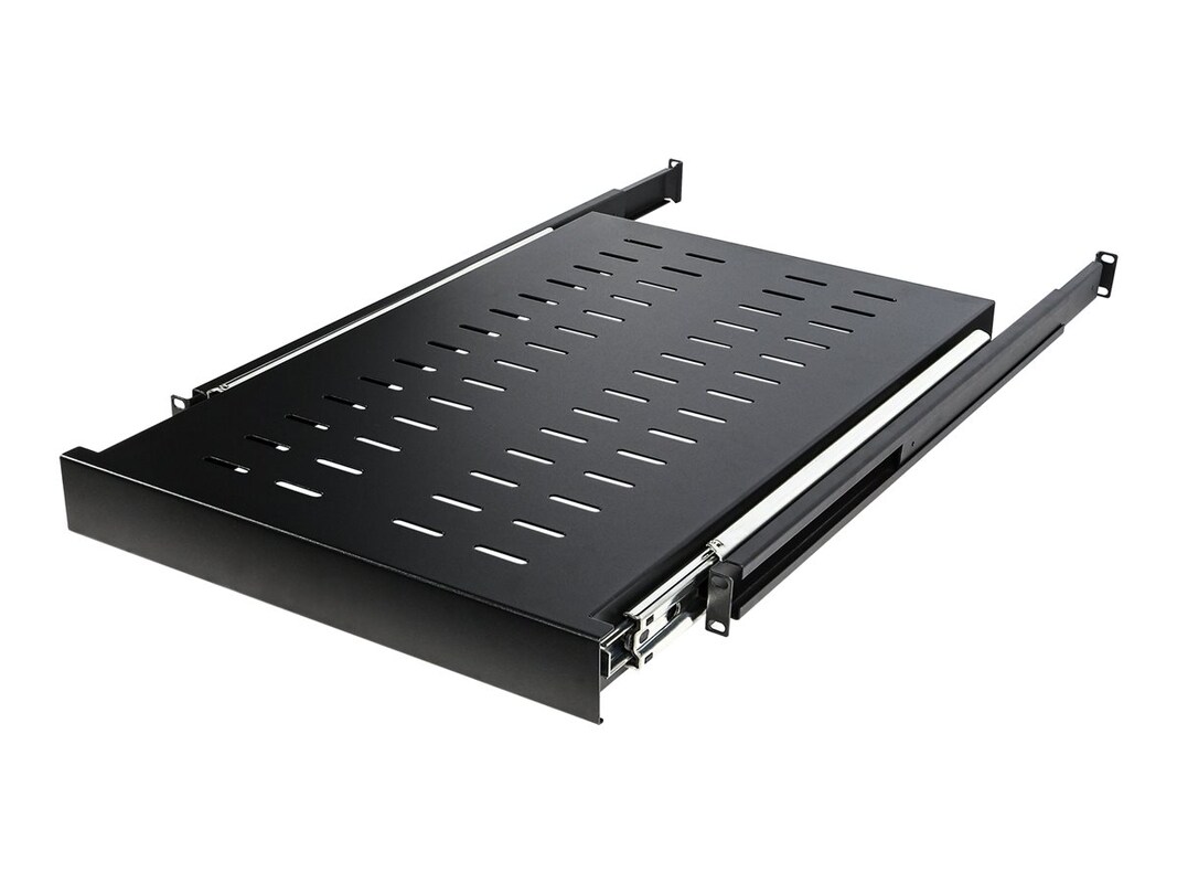 The CyberPower CRA50003 is a 1U x 25" deep sliding shelf that supports up to 132lb of IT equipment without rack mounts. Required mounting hardware is included.