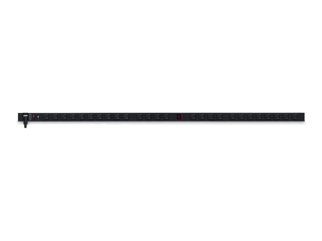 The CyberPower 26-outlet (26 Front) 0U vertical rack mount Metered power distribution unit (PDU20MVT26F) provides 120V, 20A output. It distributes power to (26) NEMA 5-20R receptacles from a single NEMA L5-20P twist lock plug, with unfiltered electrical pass-through. The current draw for connected equipment is displayed in amps on the front LCD for real-time load monitoring. Designed for datacenters and other electrically demanding applications, this unit has a rugged, industrial-grade metal housing and a 10-foot AC power cord. It supports vertical, horizontal and wall mount installation, includes a cord retention tray and is ETL/RoHS certified. A lifetime warranty ensures that this PDU is free of defects in design, assembly, material and workmanship.