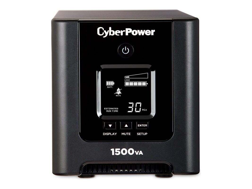 The CyberPower PFC Sinewave OR1500PFCLCD mini-tower uninterruptible power supply (UPS) with Multifunction LCD and pure sine wave output is Active PFC compatible for safeguarding networking hardware, network-based devices, small office servers, workstations and telecom equipment that use conventional and Active Power Factor Correction (PFC) power supplies. Its Automatic Voltage Regulation (AVR) technology delivers clean and consistent AC power, protecting connected equipment and preventing costly business interruptions. This UPS system is ENERGY STAR qualified with patented GreenPower UPS Bypass circuitry to save on energy costs by reducing energy consumption and heat buildup.