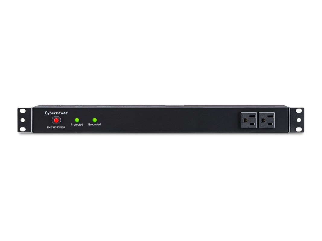 The CyberPower 12-outlet (2 Front and 10 Rear) rack mounted Rackbar surge suppressor (RKBS15S2F10R) provides 120V, 15A output and a surge suppression rating of 3,600 joules. It distributes power to (12) NEMA 5-15R receptacles from a single NEMA 5-15P plug. Designed for datacenters and other electrically demanding applications, this unit has a rugged, industrial-grade metal housing and a 15-foot AC power cord. It can be mounted either horizontally or vertically, includes a cord retention tray and is ETL/RoHS certified. A lifetime warranty and $150,000 Connected Equipment Guarantee ensures the Rackbar surge suppressor is free of defects in design, assembly, material or workmanship.