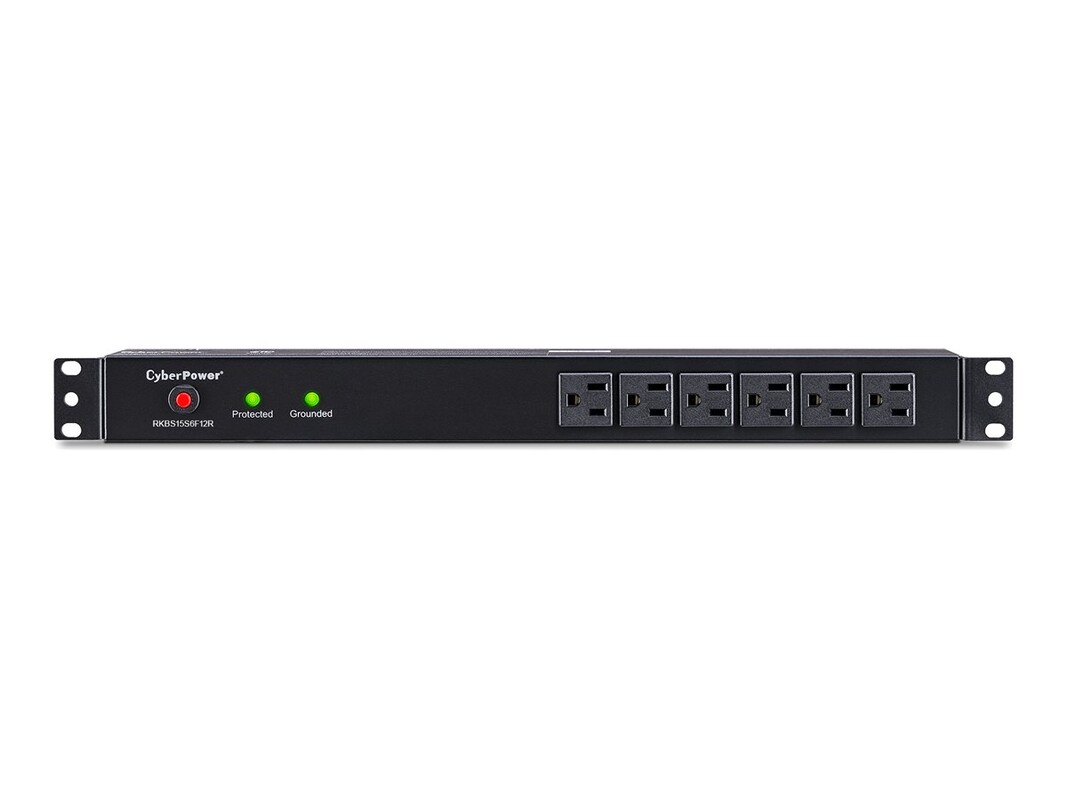 The CyberPower 18-outlet (6 Front and 12 Rear) rack mounted Rackbar surge suppressor (RKBS15S6F12R) provides 120V, 15A output and a surge suppression rating of 3,600 joules. It distributes power to (18) NEMA 5-15R receptacles from a single NEMA 5-15P plug. Designed for datacenters and other electrically demanding applications, this unit has a rugged, industrial-grade metal housing and a 15-foot AC power cord. It can be mounted either horizontally or vertically, includes a cord retention tray and is ETL/RoHS certified. A lifetime warranty and $150,000 Connected Equipment Guarantee ensures the Rackbar surge suppressor is free of defects in design, assembly, material or workmanship.