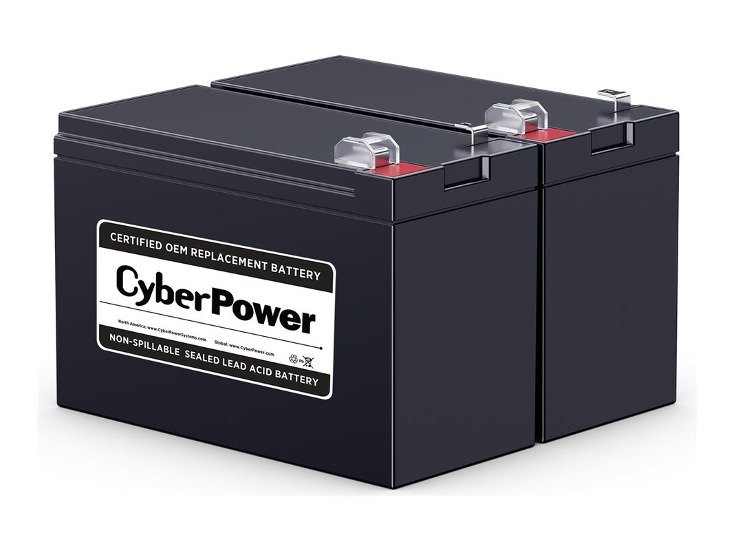 The RB1270X2C UPS Replacement Battery Cartridge restores life to CyberPower UPS systems that have weak or completely depleted internal batteries. The RB1270X2C contains two 12V/7Ah batteries, certified to meet or exceed original manufacturer specifications. This leak-proof, sealed lead-acid battery never requires replacement fluid. The batteries install easily into your CyberPower UPS system and are shipped with reusable packaging for delivering expired batteries to a suitable recycling center. The RB1270X2C comes with instructions, recycling information, and an eighteen-month warranty.UPS CompatibilityCST135XLUCP900AVRCP1200AVR.