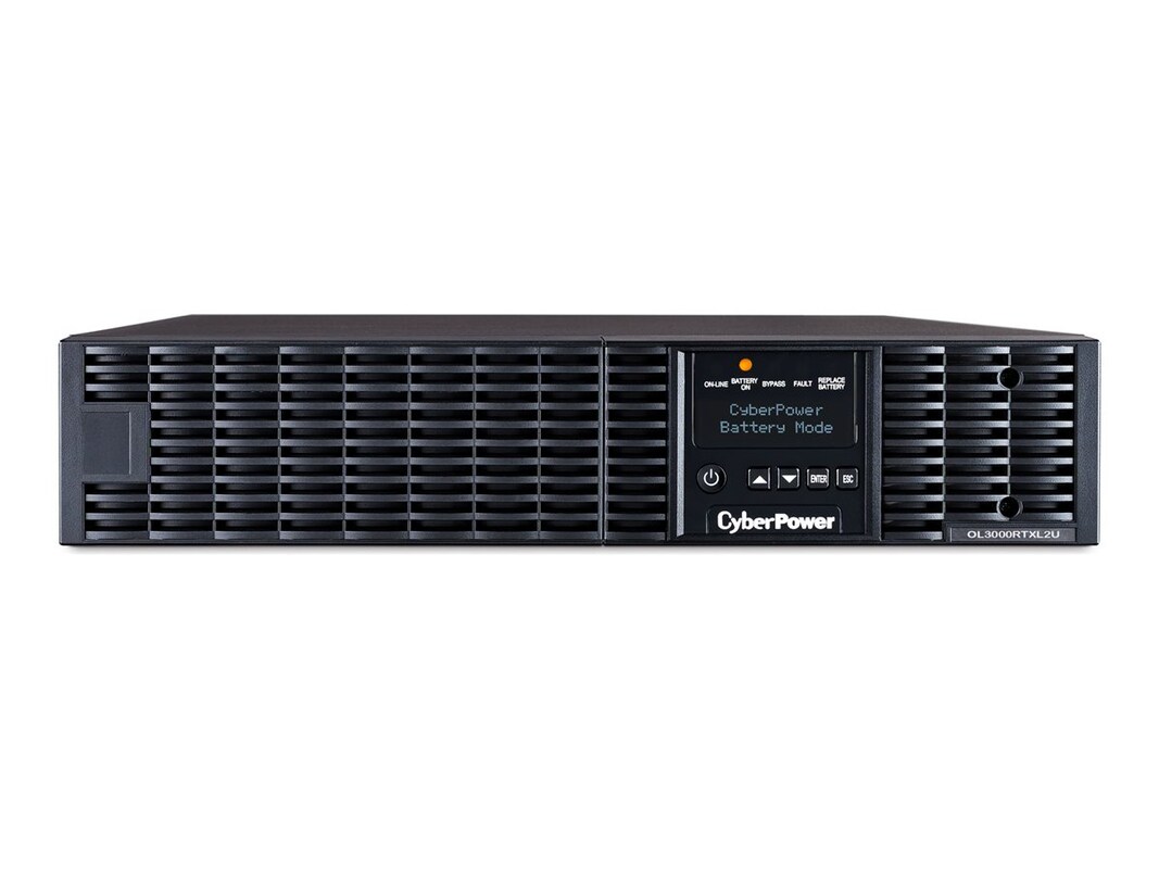 The CyberPower Smart App Online OL3000RTXL2U rack/tower uninterruptible power supply (UPS) with LCD control panel and pure sine wave output safeguards mission-critical servers, data center and telecom equipment, VoIP and internetworking hardware that require seamless power correction. Its Online Double-Conversion topology is generator compatible and delivers consistent and clean AC power with zero transfer time, protecting connected equipment and preventing costly business interruptions. Auto-bypass insures connected equipment continues to operate seamlessly when an overload or internal fault is detected.