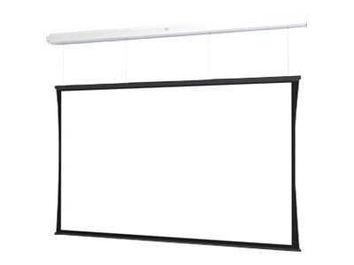 This motorized projection screen. Includes a range of premium features: Smooth Roll Technology for a perfectly flat screen, the TruGuide Electric Screen Tensioning System for optimal surface smoothness, and a standard black backing to enhance image brightness. It also comes with a Decora-style three-button wall switch, Low Voltage Control (LVC), and optional control systems for flexible operation. The white powder-coated case adds a clean, modern finish to any space.