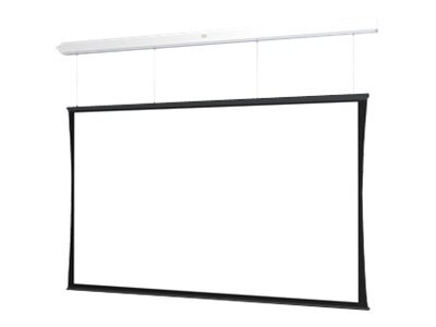 The Tensioned Advantage ceiling-recessed electric screen series is designed with ceiling trim in place, to conceal the rough opening eliminating the need to complete additional trim work once the large format screen is installed. The motorized electric screen's two-stage installation option affords the screen case to be installed during the rough-in construction stage, and the screen surface assembly during the finishing stage. Sliding installation brackets allow mounting flexibility for easy attachment of the large format screen housing to the structure above the drop ceiling. Tensioned Advantage with SightLine Da-Lite's new cable drop feature, SightLine, available with the tried-and-true Tensioned Advantage (up to 177in Diagonal 16:9 and up to 182in Diagonal 16:10) electric screen, gives the impression of a floating screen, eliminating the need for a black drop.