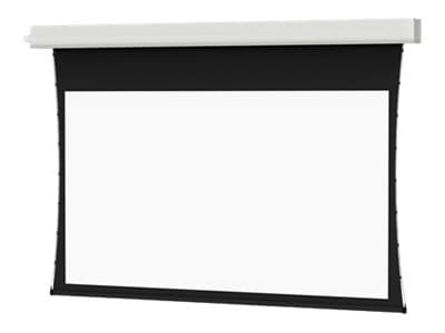 This motorized projection screen. Includes a range of premium features: Smooth Roll Technology for a perfectly flat screen, the TruGuide Electric Screen Tensioning System for optimal surface smoothness, and a standard black backing to enhance image brightness. It also comes with a Decora-style three-button wall switch, Low Voltage Control (LVC), and optional control systems for flexible operation. The white powder-coated case adds a clean, modern finish to any space.