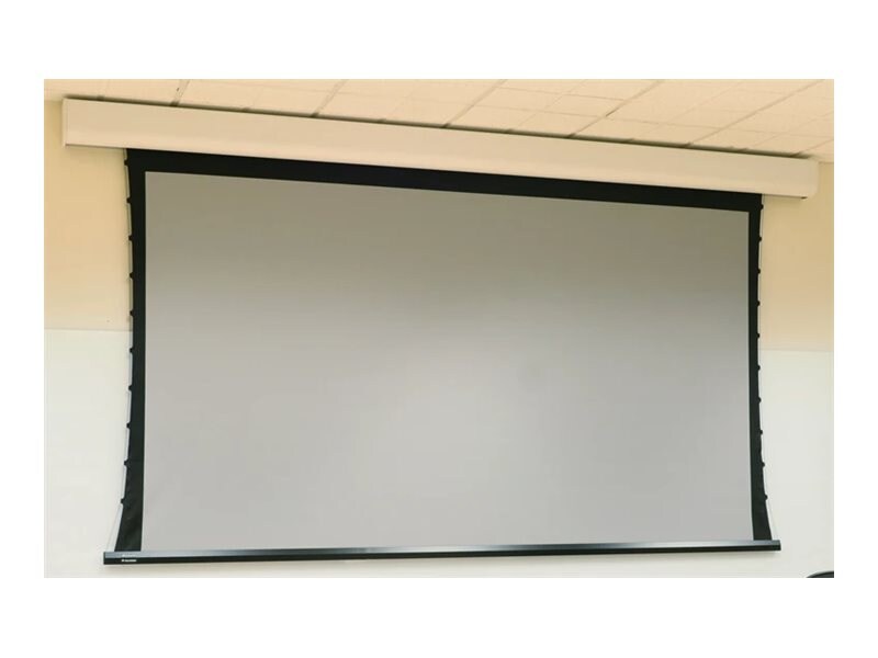 The Draper Acumen V projection screen is designed to deliver a viewing experience with its 92-inch image diagonal size. This electric screen offers a motorized option, allowing for deployment and retraction at the touch of a button, making it convenient for home theater setups and professional presentations. With a tab-tensioned system, the screen maintains a flat and smooth surface, preventing wrinkles or distortions while ensuring optimal image quality. Coupled with a quiet motor, the operation remains discreet, allowing users to focus on the presentation without distractions.