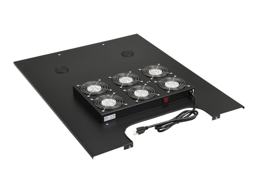 The SmartRack SRFANROOFWD is a roof-mounted panel containing six 120V high-performance fans. Designed specifically for SmartRack's 30-inch-wide rack enclosures, these fans help keep rack-mounted equipment cool to maintain top performance and avoid failures that can lead to costly downtime, damage or data loss. The SRFANROOFWD removes warm air at rates up to 630 CFM.
