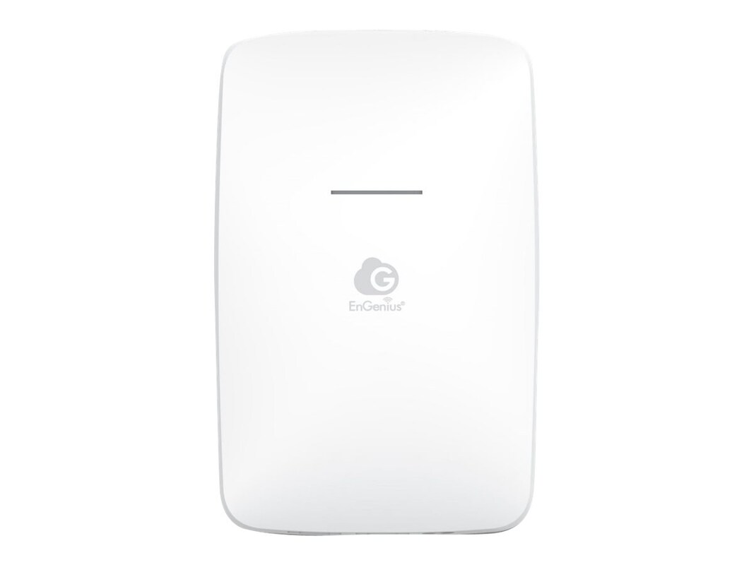 EnGenius cloud managed ECW215 Wi-Fi 6 dual-band 2 x 2:2 wall plate access point with built-in 2-port Gigabit switch, with port 2 supporting PoE power transfer to other PoE devices, provides exceptional in-room wired and wireless connectivity for superior entertainment in hotel rooms, student housing, assisted living, senior living, multi-tenant dwellings, and classrooms.
