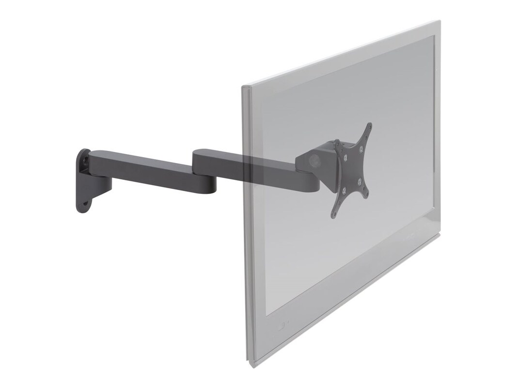 The HAT Design Works 9110-HD Series is a mounting kit designed for flat panel displays up to 43 inches. It includes heavy-duty components that ensure stability while providing flexibility to tilt the screen up to 200 degrees for optimal viewing angles. The mounting kit features two 8.5 inch extension arms, allowing for easy adjustments to fit various wall configurations. This versatility makes it suitable for both portrait and landscape orientations, making it a practical choice for any home or office setup.