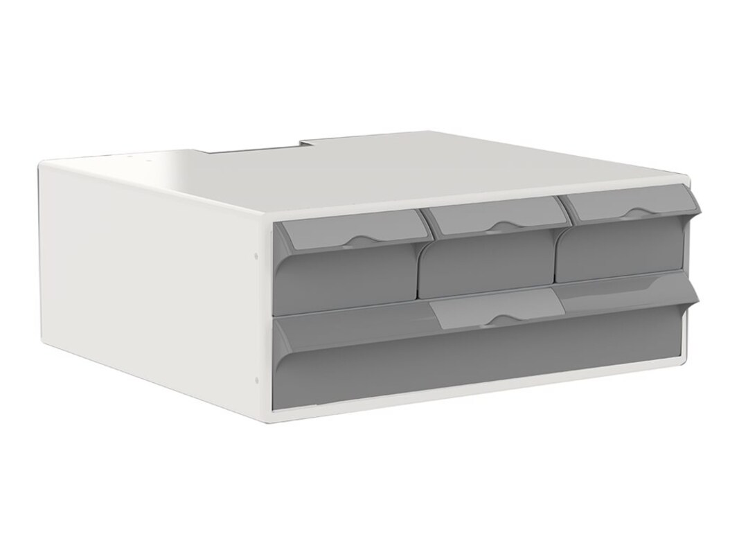 The Enovate Medical Encore AV Furniture offers a practical solution for organizing medical equipment and supplies. Designed as a mounting component, this furniture piece features a cart mountable design for flexibility in various environments. It comes with three small bins and one large bin, enabling efficient storage and easy access to essential items. This allows healthcare professionals to maintain a tidy and efficient workspace, ultimately improving productivity in medical settings.