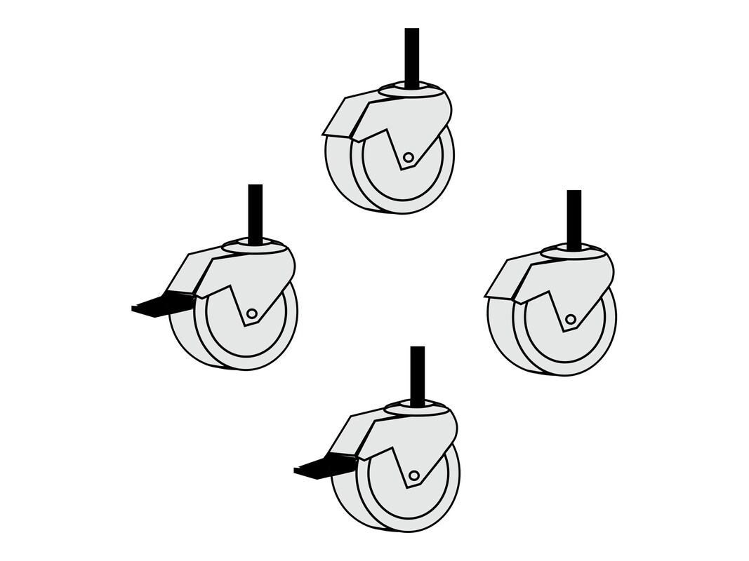 Move your Bench with ease over all types of surfaces. Casters are single wheel, made of rubber with a 1/2" threaded stem that screws into the same mounts that the glides use. Casters come in a set of four, two locking and two non-locking. Positive lock action ensures that your bench will not move when in locked position