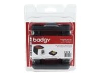 This Consumable Pack for 100 Prints for the Badgy 100 and 200 Card Printer comes with a YMCKO Color Ribbon and 100 thick PVC cards. The ribbon yields 100 prints.