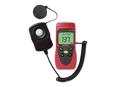 The Amprobe LM-100 light meter measures the visible light from fluorescent, metal halide, high-pressure sodium or incandescent sources. It is a portable, easy-to-use digital light meter designed for simple one-hand operation reading in Lumen (lux) or foot candle (fc) units. The LM-100 measures a wide range of light 20,000 fc or lux with an accurate, high resolution of. 01 fc/lux.