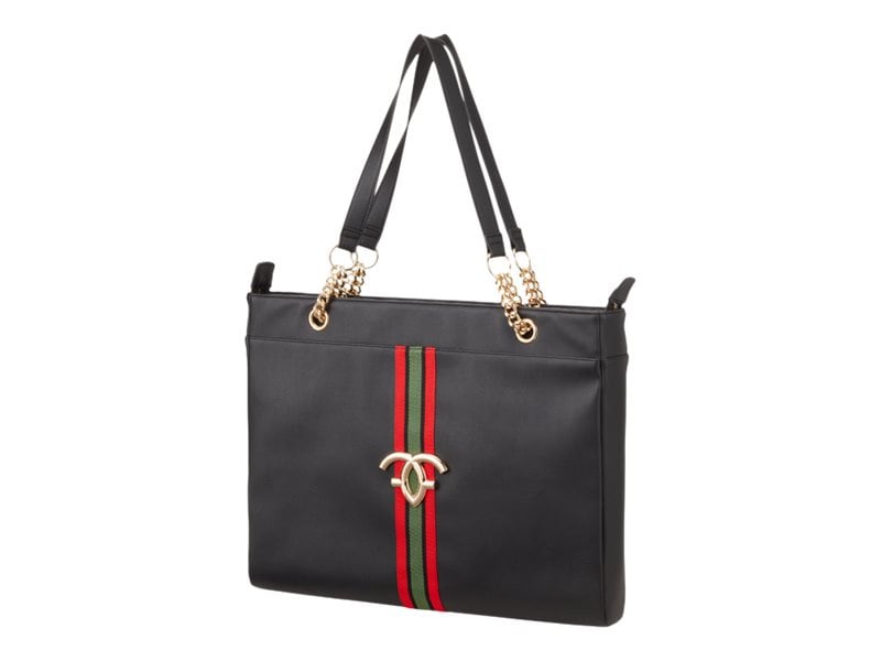 Timeless elegance personifies Francine's Stryker zippered East/West tote. Accessorized with Gold chain hardware, and single glamour stripe. Clip on or off the detachable wristlet for personal items and evenings ou.