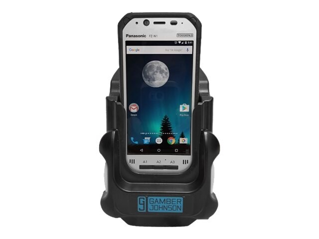 Engineered for the demanding work environments in utility, public safety, and material handling, the Panasonic Toughbook F1/N1 rugged cradle is designed to be used in either a horizontal or vertical orientation. Easily lock your handheld into place with just one hand. Simply place the N1 handheld, in the cradle and press down to lock it in place. To remove the N1 handheld, squeeze the side release buttons.