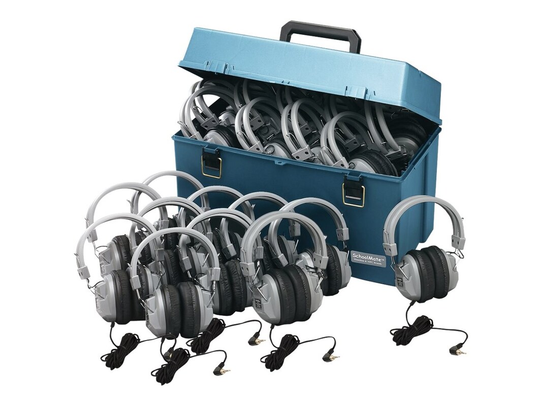 Designed with busy classrooms in mind, the lab pack features 24 HA7 SchoolMate stereo headphones. The HA7 SchoolMate headphone is specially-designed to be more durable and reliable than ever! Featuring high-quality sound, soft leatherette cushions, adjustable headband and Dura-Cord - the chew, kink and knot-resistant, PVC-jacketed, braided cord - it's the ideal companion to the growing classroom technology.