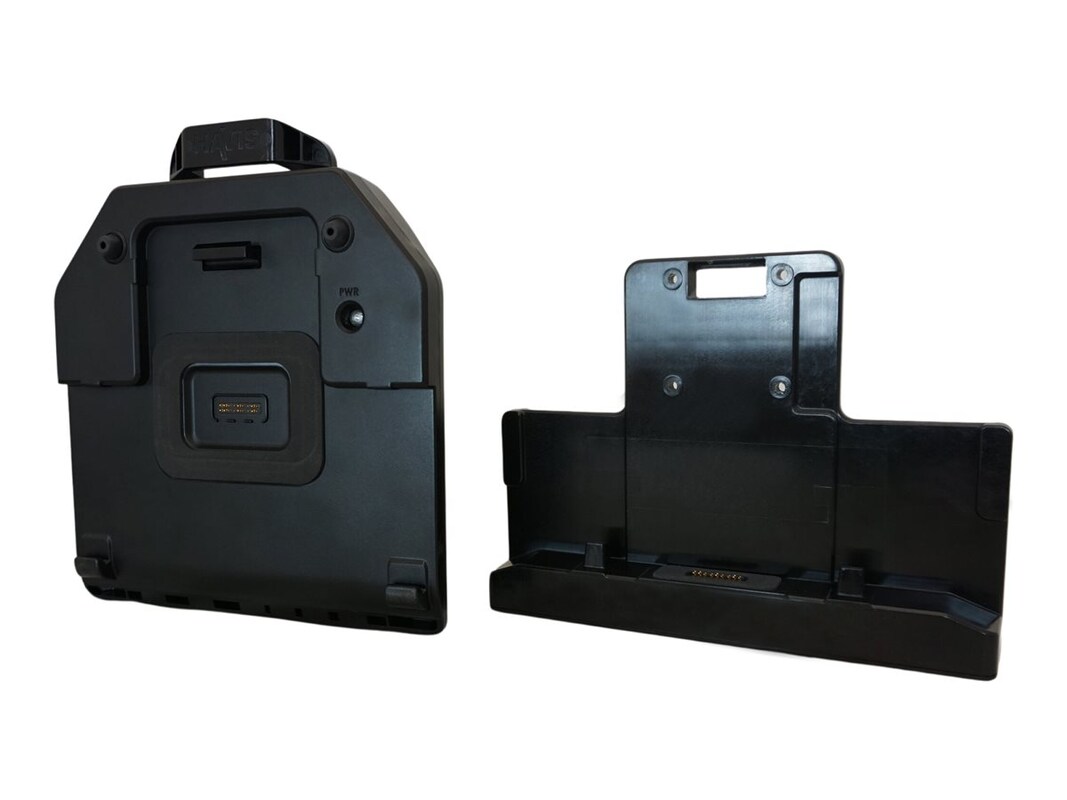 Discover a solution in port expansion with the Havis Docking Station. Engineered for durability and performance, this device operates in extreme conditions, boasting compliance with MIL-STD 810G 514.5, SAE J1455, and IP65 standards for resistance to dust, water, and temperature variations from -30 °C to 55 °C. Its robust design is complemented by features aimed at enhancing user experience, including a two-piece design with integrated cable management, a spring-loaded docking connector for easy one-handed docking and undocking, and a lightweight, polycarbonate construction with rounded edges for portability and safety. The docking station also offers versatile connectivity options, with three SuperSpeed USB 3.0 ports, an Ethernet port, and a serial connection, ensuring you stay connected wherever your work takes you. Designed with the user in mind, it features a keyed lock for security and LED indicators for operational status, making it a choice for professionals on-the-go.
