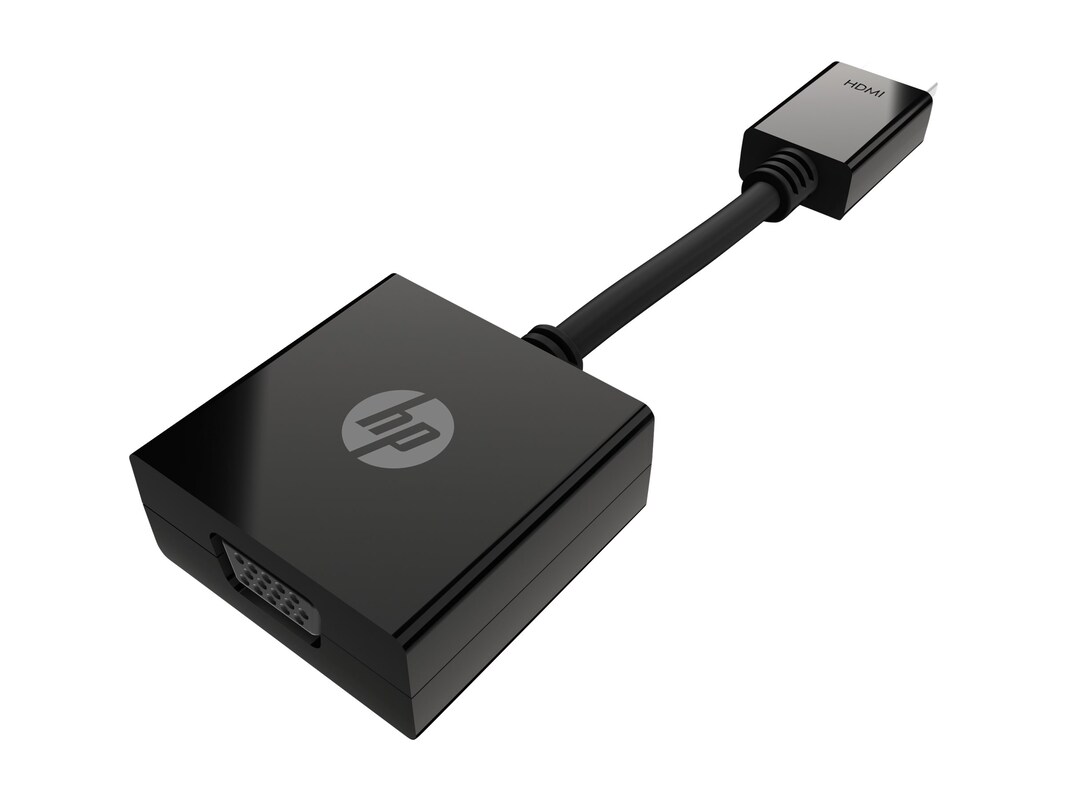 The HP HDMI to VGA Adapter maximizes display functionality by converting a HDMI output signal to an analog VGA input for easy connecting to an external VGA display for dual-display productivity.
