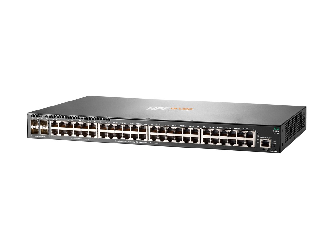The Aruba 2930F Switch series provides performance, security, and ease of use for enterprise edge, SMB, and branch office networks. Delivers a consistent wired/wireless user experience with unified management tools such as ClearPass Policy Manager and Airwave Network Management. Provides optimal configuration automatically when connected to Aruba access points for PoE priority, VLAN configuration, and rogue AP containment. Convenient built-in 1GbE or 10GbE uplinks and PoE+ models deliver right-size network access performance. Robust basic Layer 3 feature set includes static and RIP routing, ACLs, sFlow, IPv6 with no software licensing required. Designed with a powerful ProVision ASIC and support for OpenFlow, the Aruba 2930F is ready to take advantage of SDN applications such as HPE Network Visualizer, Optimizer, and Protector Software products.