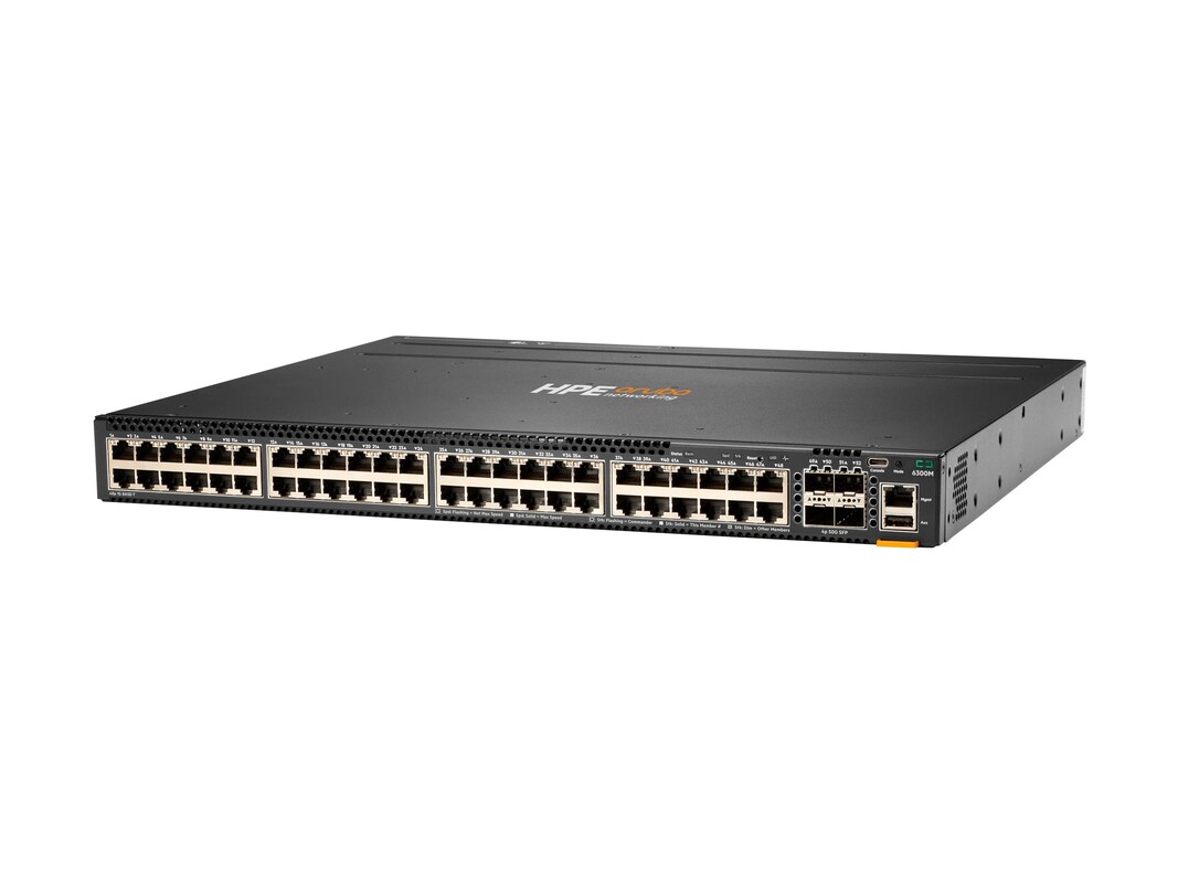 HPE Aruba 6300M 1U RM L3 Managed Switch ARM Cortex-A72 1.78GHz 8GB RAM 32GB Flash 48xGbE PoE+ 4x50GbE