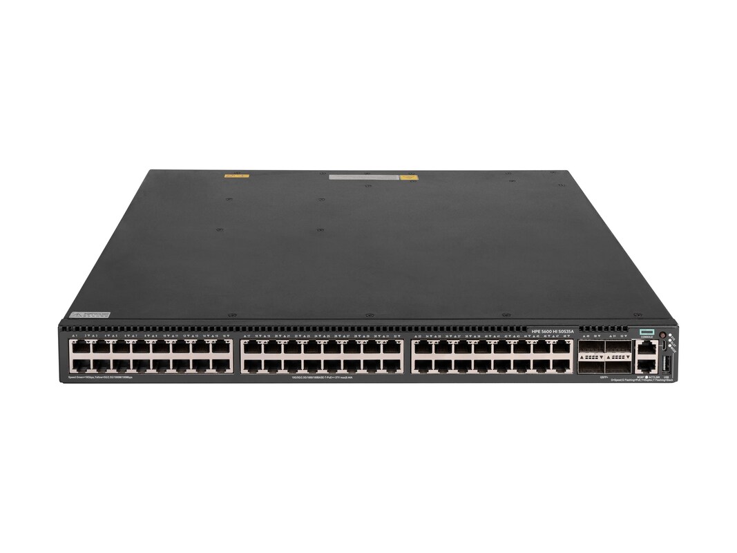 The HPE FlexNetwork 5600 HI Switch Series delivers superior performance using Multigigabit, PoE8, MACsec, AES 256 encryption, link flexibility, and scalability at the access layer of medium and large enterprise campus networks. Additional modules can be included for increased capacity. This series offers improved resiliency with DRNI and IRF, better reliability and performance in user Quality of Service (QoS), enhanced security with hardware-based MACsec and AAA authentication, impressive efficiency with dual redundant power supplies, embedded network management using Smart MC and enhanced network visibility using IMC.