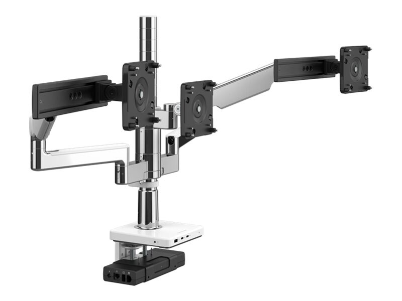 Humanscale M Flex for Triple Monitors, M Connect 3 Pro Dock, Clamp Mount, 18" Post, Aluminum w White Trim