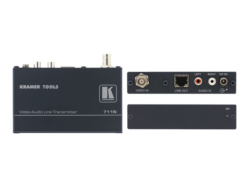 The 711N is a twisted pair transmitter for composite video and unbalanced stereo audio signals. The 711N transmitter converts composite video and stereo audio to a twisted pair signal and the 712N receiver converts the twisted pair signal back into composite video and stereo audio signals.