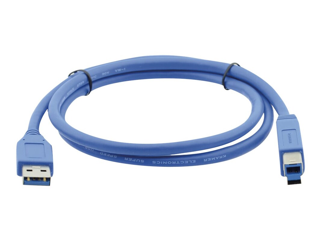 Kramer's C-USB3/AB is a SuperSpeed USB 3.0 Type-A male to Type-B male cable used to connect computers and peripherals, such as printers, scanners, cameras, keyboards, mice and other digital devices for superior signal transfer of up to 4.8Gbps.