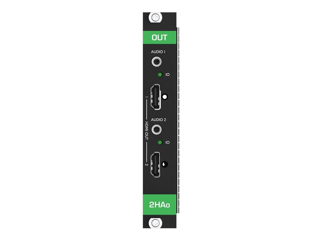 Elevate your studio and production equipment with the Kramer MC3-2HAo HDMI / analog audio output board. Designed to meet the rigorous demands of modern production environments, this device supports 4K60 4:4:4 signals, ensuring your projects benefit from high video quality. With comprehensive audio support, including 7.1 multi-channel audio and compatibility with DTS-HD, Dolby Digital Plus, and Dolby TrueHD, the MC3-2HAo enriches your productions with crystal-clear, high-fidelity sound. Its robust connectivity options, featuring HDMI and unbalanced audio outputs, provide the flexibility needed for seamless integration into any setup. Whether you're working on film, television, or digital media, the MC3-2HAo is engineered to enhance your creative capabilities, making it an essential addition to your studio and production equipment.